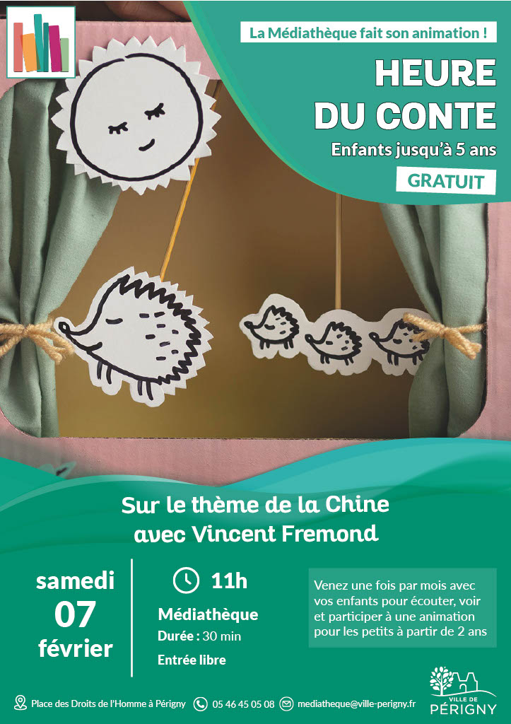 Samedi 07 février : Le thème de cette séance sera consacré à la Chine, invitant les enfants à découvrir cet univers à travers des récits, des images et des surprises adaptées à leur âge.
