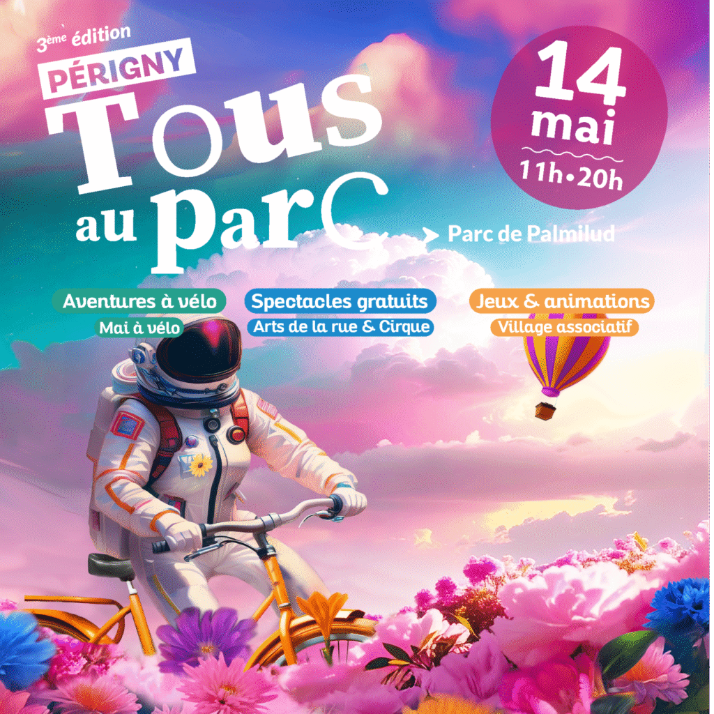La Ville de Périgny vous donne rendez-vous au parc de Palmilud pour une journée conviviale, festive et ouverte à toutes et tous. Spectacles en plein air, vélo, jeux, animations, ateliers créatifs, Color Run… de quoi passer un beau moment en famille ou entre amis !